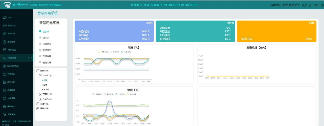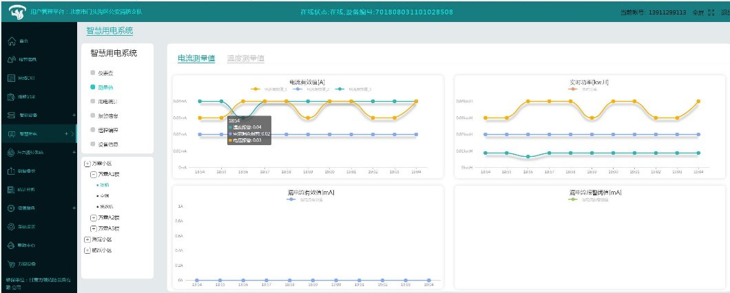 通過消防CRT云平臺可以實時查看電流、溫度、漏電電流、功率等。
